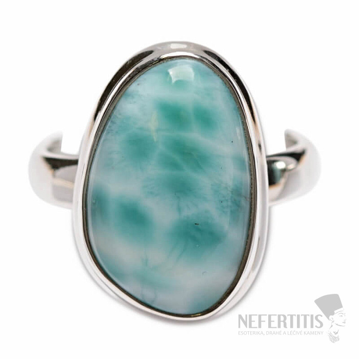 Elegant ring silver with a beautiful and high-quality larimar cabochon , which resembles the play of sun rays on the surface of the sea. The larimar stone is carefully selected with a distinct blue color and pattern. Larimar size approx. 1.8 cm. Ag 925. You are purchasing the jewelry shown directly.