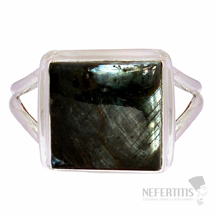 Beautiful and unique silver ring with natural larvikite, whose shimmer is reminiscent of stars in the night sky. This stone is also called black moonstone or black labradorite, due to the rainbow play of colors under the falling light. Ag 925. Let yourself be enchanted by the beauty and play of its vibrant colors reminiscent of moonstone and the starry sky. Stone size approx. 1.4 cm. You are purchasing the jewelry pictured.