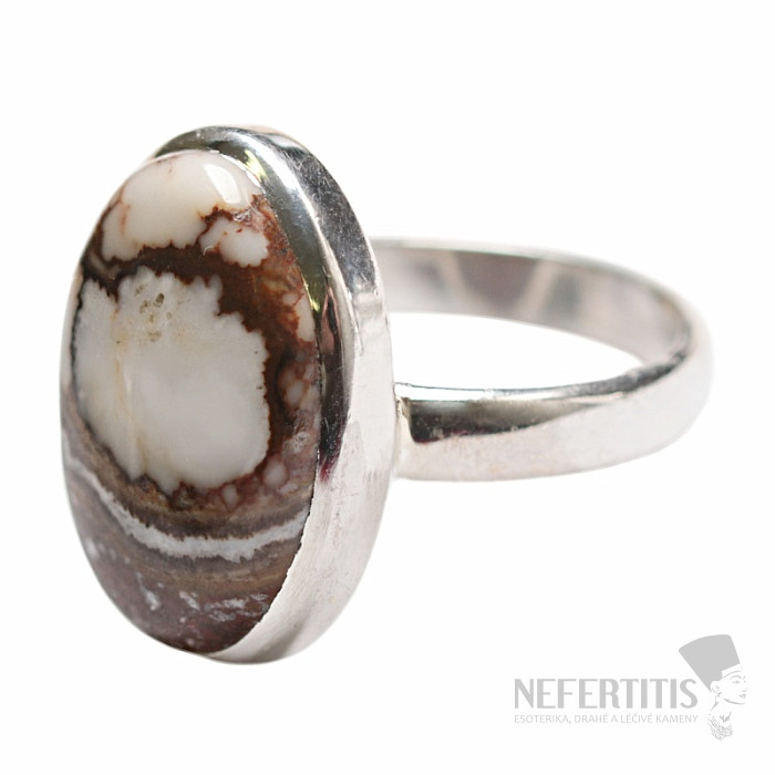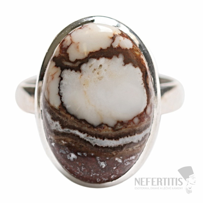 Silver ring with Wild horse magnesite, found in Arizona. Ag 925. This type of magnesite has a unique, unmistakable pattern - beautiful marbling in white magnesite. Stone size approx. 2.1 cm. You are purchasing the jewelry pictured.