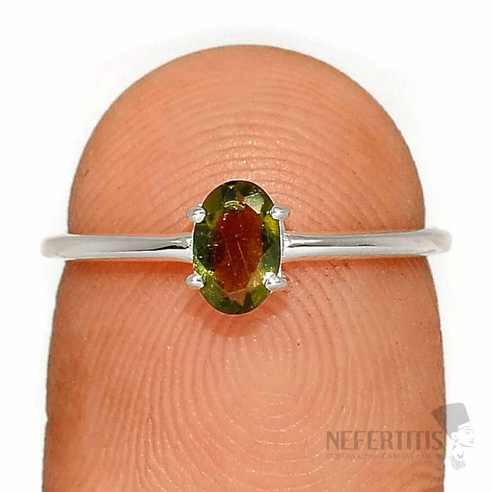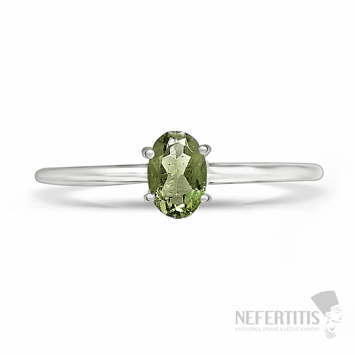 Elegant and delicate, yet timeless silver ring with cut moldavite . Ag 925. Stone size approx. 0.5 cm . Illustrative photo, the color of the stone may differ slightly from the photo. However, you will always receive a piece of jewelry of comparable quality.