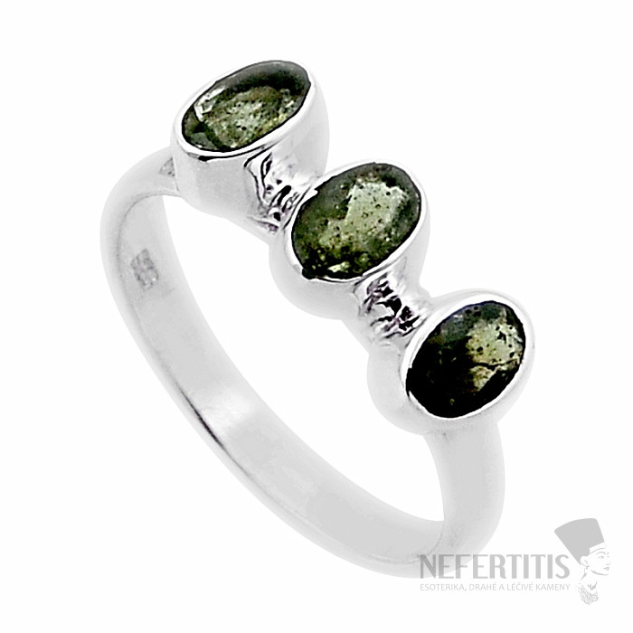 Silver ring with cut moldavites. Ag 925. Moldavite is considered a lucky charm. You are purchasing the piece shown. The size of each moldavite is approximately 0.6 cm.