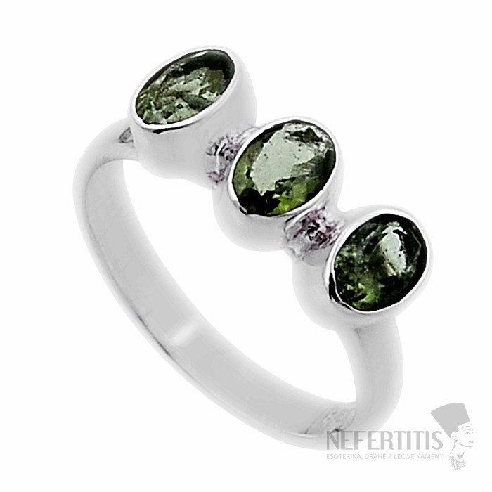 Silver ring with cut moldavites. Ag 925. Moldavite is considered a lucky charm. You are purchasing the piece shown. The size of each moldavite is approximately 0.6 cm.