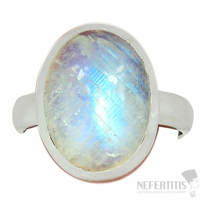 An exceptionally beautiful, elegant silver ring with a Bluefire rainbow moonstone will bring the magic of its rainbow colors and "blue flame" into your life. No one will miss this ring on your hand! The ring has stones with a particularly beautiful play of blue reflections. Ag 925. Stone size approx. 1.6 cm . You are buying the jewelry pictured.