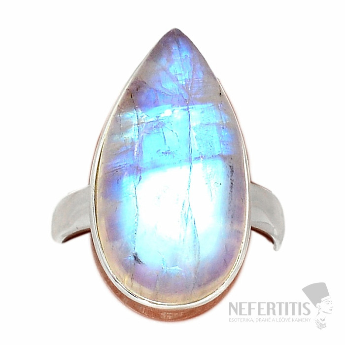 An exceptionally beautiful, elegant silver ring with a Bluefire rainbow moonstone will bring the magic of its rainbow colors and "blue flame" into your life. No one will miss this ring on your hand! The ring has stones with a particularly beautiful play of blue reflections. Ag 925. Stone size approx. 2.3 cm . You are buying the jewelry pictured.