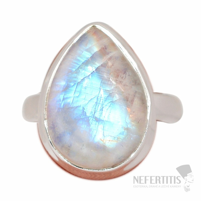 An exceptionally beautiful, elegant silver ring with a Bluefire rainbow moonstone will bring the magic of its rainbow colors and "blue flame" into your life. No one will miss this ring on your hand! The ring has stones with a particularly beautiful play of blue reflections. Ag 925. Stone size approx. 1.7 cm . You are buying the jewelry pictured.