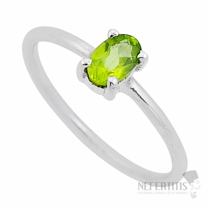 Silver ring with cut olivine. Ag 925. Thanks to the cut facets, the beautiful color of the olivine stands out, highlighted by the shimmer in the light. You are purchasing the jewelry shown directly. Stone size approx. 0.5 cm.