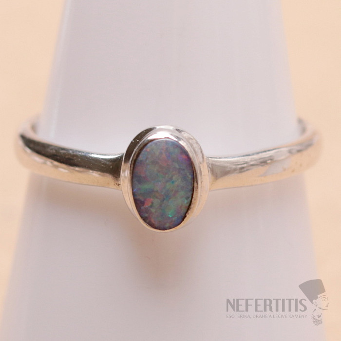 Elegant silver ring with Australian opal with a beautiful play of distinctive and rich colors. Ag 925. An impressive piece of jewelry, evoking joy and feelings of harmony from the look. The moment when, with every movement of your hand, the light on the surface of the opal ignites, captivating sparks of a different color each time, you will certainly fall under the spell of this beautiful stone. The size of the opal doublet is approximately 0.7 cm. You are purchasing the jewelry pictured.