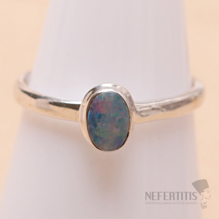 Elegant silver ring with Australian opal with a beautiful play of distinctive and rich colors. Ag 925. An impressive piece of jewelry, evoking joy and feelings of harmony from the look. The moment when, with every movement of your hand, the light on the surface of the opal ignites, captivating sparks of a different color each time, you will certainly fall under the spell of this beautiful stone. The size of the opal doublet is approximately 0.7 cm. You are purchasing the jewelry pictured.