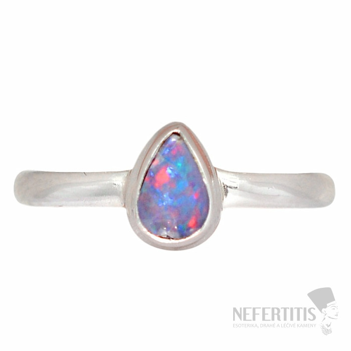 Elegant silver ring with Australian opal with a beautiful play of distinctive and rich colors. Ag 925. An impressive piece of jewelry, evoking joy and feelings of harmony from the look. The moment when, with every movement of your hand, the light on the surface of the opal ignites, captivating sparks of a different color each time, you will certainly fall under the spell of this beautiful stone. The size of the opal doublet is approximately 0.6 cm. You are purchasing the jewelry pictured.