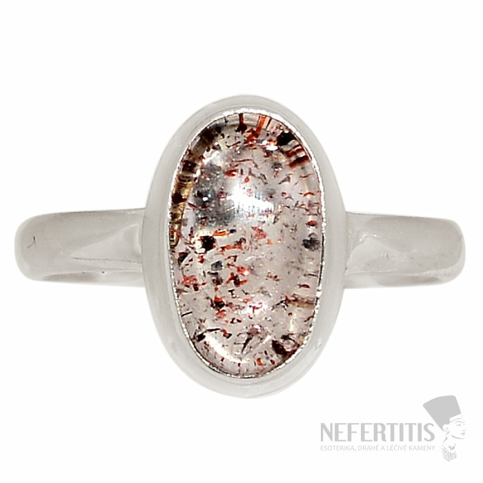 Silver ring with a rare crystal from the Orire locality. This semi-precious stone is mined in the Orire locality in Nigeria. Orire can be loosely translated as "good luck", which is why this stone is nicknamed the lucky crystal. It is a rare combination of crystal with inclusions of hematite and lepidocrocite . Ag 925. Stone size approx. 1.1 cm. You are purchasing the jewelry pictured.