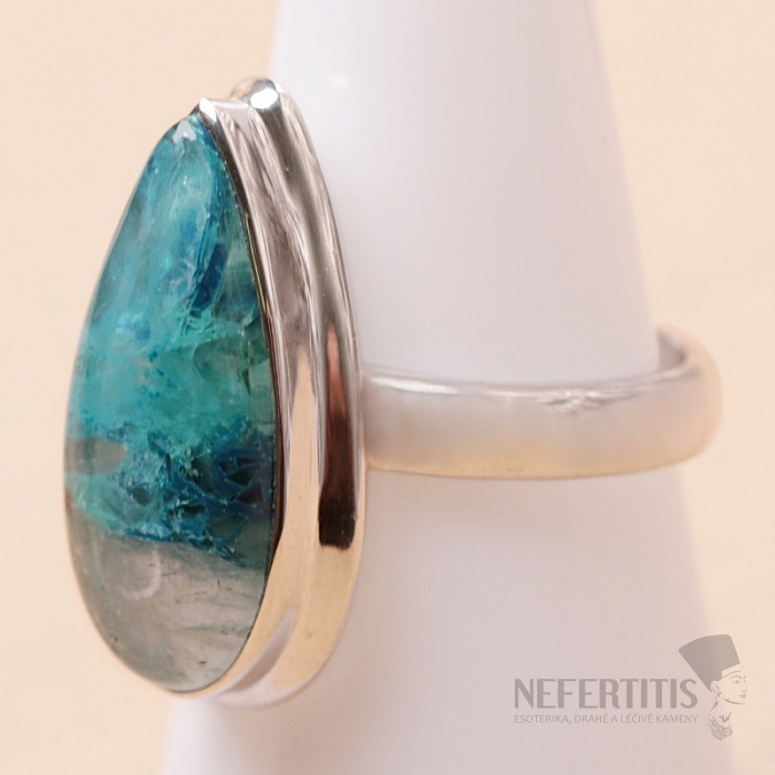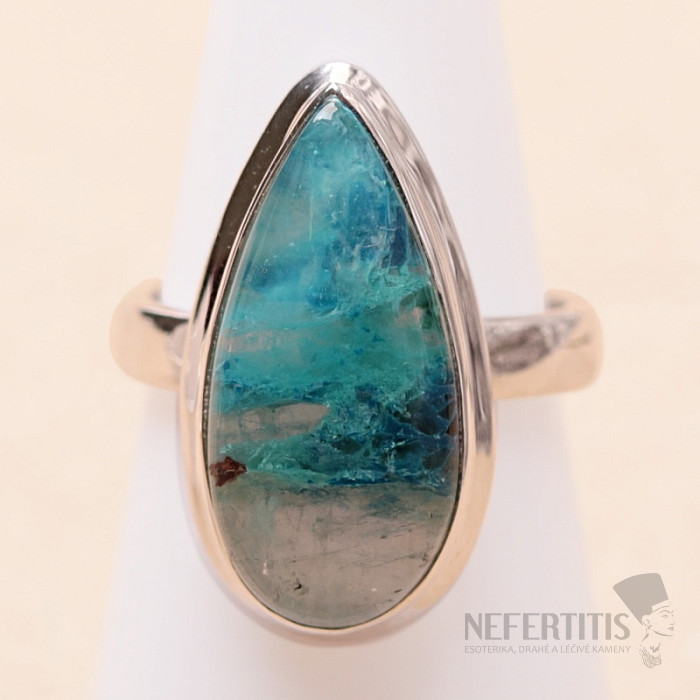 Charming silver ring with rare and collector-valued natural Quantum quattro. Ag 925. Quantum quattro is a combination of four minerals - shattuckite, dioptase, malachite and chrysocolla. Each piece of jewelry is original, unique and thanks to the color combination and arrangement of minerals, it stimulates the imagination, reminiscent of a bird's eye view of the Earth. You will have a beautiful piece of jewelry that no one will miss, suitable for various occasions. You are buying the jewelry shown directly. Stone size approx. 2.2 cm.