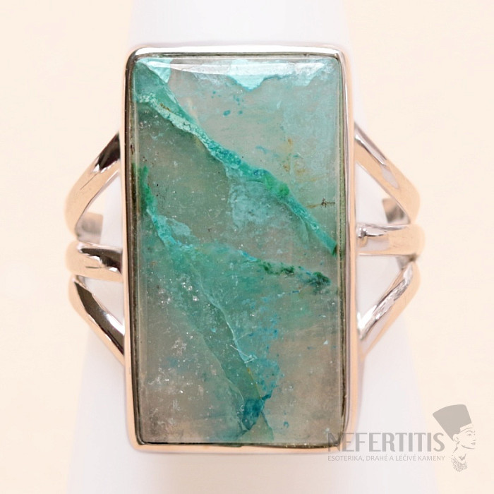 Charming silver ring with rare and collector-valued natural Quantum quattro. Ag 925. Quantum quattro is a combination of four minerals - shattuckite, dioptase, malachite and chrysocolla. Each piece of jewelry is original, unique and thanks to the color combination and arrangement of minerals, it stimulates the imagination, reminiscent of a bird's eye view of the Earth. You will have a beautiful piece of jewelry that no one will miss, suitable for various occasions. You are buying the jewelry shown directly. Stone size approx. 2.2 cm.