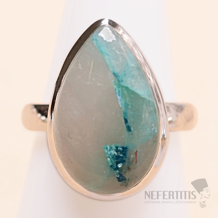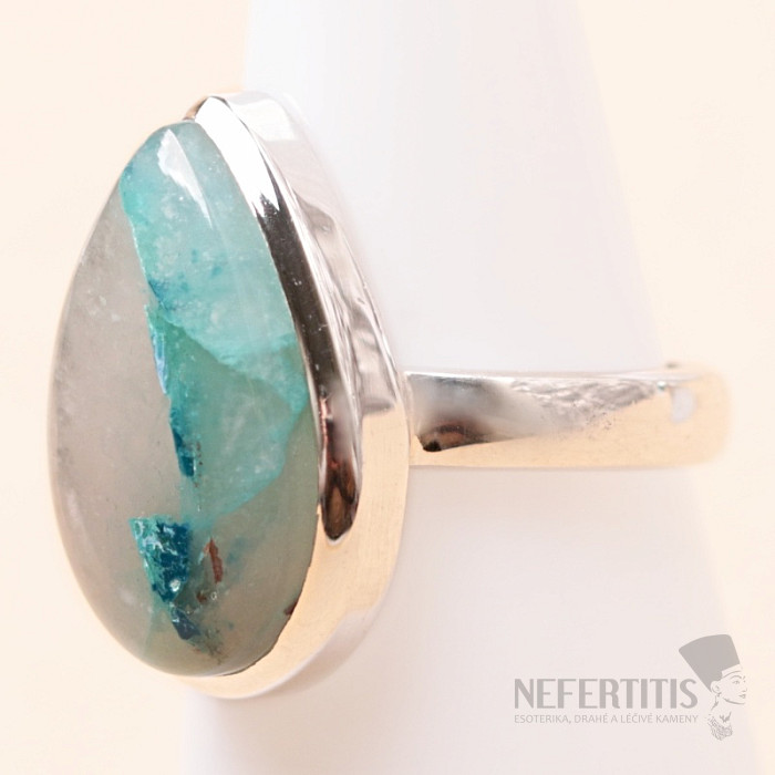 Charming silver ring with rare and collector-valued natural Quantum quattro. Ag 925. Quantum quattro is a combination of four minerals - shattuckite, dioptase, malachite and chrysocolla. Each piece of jewelry is original, unique and thanks to the color combination and arrangement of minerals, it stimulates the imagination, reminiscent of a bird's eye view of the Earth. You will have a beautiful piece of jewelry that no one will miss, suitable for various occasions. You are buying the jewelry shown directly. Stone size approx. 1.9 cm.