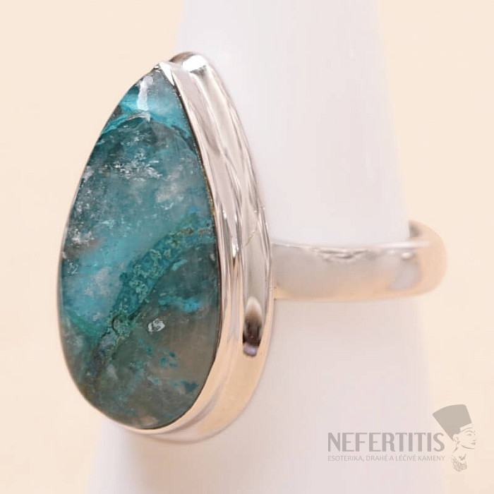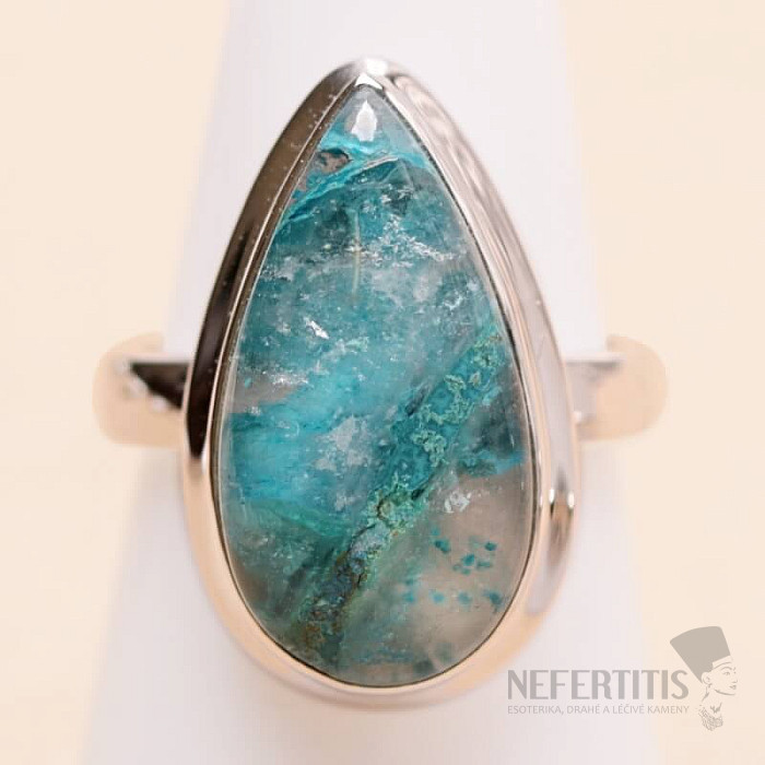 Charming silver ring with rare and collector-valued natural Quantum quattro. Ag 925. Quantum quattro is a combination of four minerals - shattuckite, dioptase, malachite and chrysocolla. Each piece of jewelry is original, unique and thanks to the color combination and arrangement of minerals, it stimulates the imagination, reminiscent of a bird's eye view of the Earth. You will have a beautiful piece of jewelry that no one will miss, suitable for various occasions. You are buying the jewelry shown directly. Stone size approx. 2.2 cm.