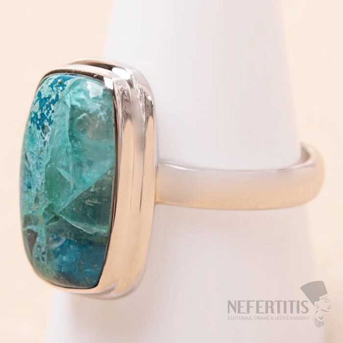 Charming silver ring with rare and collector-valued natural Quantum quattro. Ag 925. Quantum quattro is a combination of four minerals - shattuckite, dioptase, malachite and chrysocolla. Each piece of jewelry is original, unique and thanks to the color combination and arrangement of minerals, it stimulates the imagination, reminiscent of a bird's eye view of the Earth. You will have a beautiful piece of jewelry that no one will miss, suitable for various occasions. You are buying the jewelry shown directly. Stone size approx. 1.9 cm.