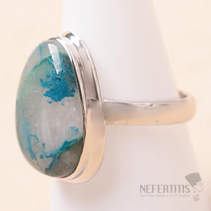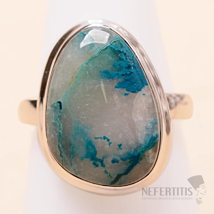Charming silver ring with rare and collector-valued natural Quantum quattro. Ag 925. Quantum quattro is a combination of four minerals - shattuckite, dioptase, malachite and chrysocolla. Each piece of jewelry is original, unique and thanks to the color combination and arrangement of minerals, it stimulates the imagination, reminiscent of a bird's eye view of the Earth. You will have a beautiful piece of jewelry that no one will miss, suitable for various occasions. You are buying the jewelry shown directly. Stone size approx. 2.1 cm.