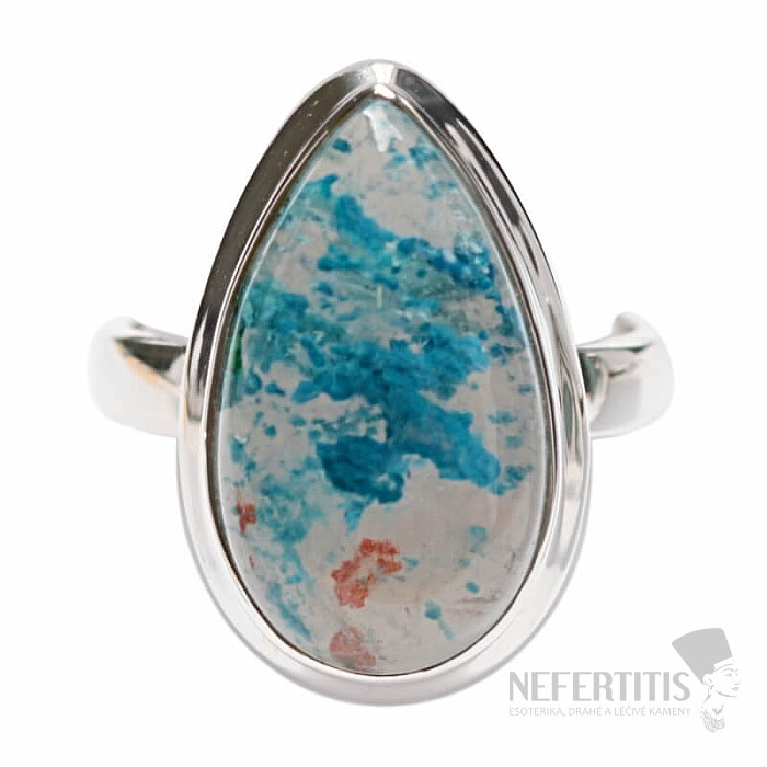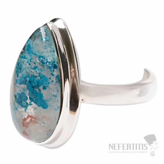 Charming silver ring with rare and collector-valued natural Quantum quattro. Ag 925. Quantum quattro is a combination of four minerals - shattuckite, dioptase, malachite and chrysocolla. Each piece of jewelry is original, unique and thanks to the color combination and arrangement of minerals, it stimulates the imagination, reminiscent of a bird's eye view of the Earth. You will have a beautiful piece of jewelry that no one will miss, suitable for various occasions. You are buying the jewelry pictured directly. Stone size approx. 2.1 cm.