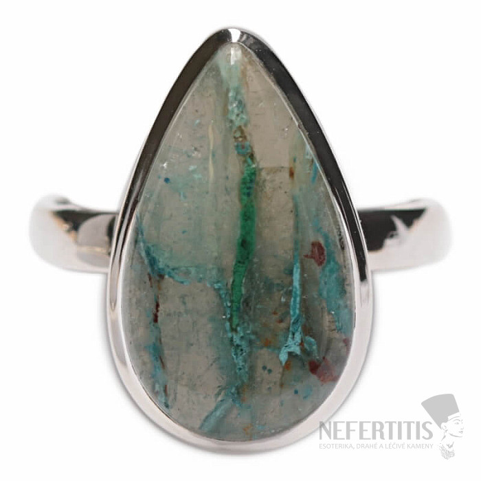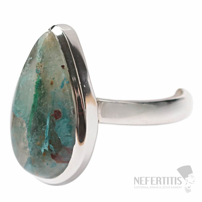 Charming silver ring with rare and collector-valued natural Quantum quattro. Ag 925. Quantum quattro is a combination of four minerals - shattuckite, dioptase, malachite and chrysocolla. Each piece of jewelry is original, unique and thanks to the color combination and arrangement of minerals, it stimulates the imagination, reminiscent of a bird's eye view of the Earth. You will have a beautiful piece of jewelry that no one will miss, suitable for various occasions. You are buying the jewelry shown directly. Stone size approx. 2.1 cm.