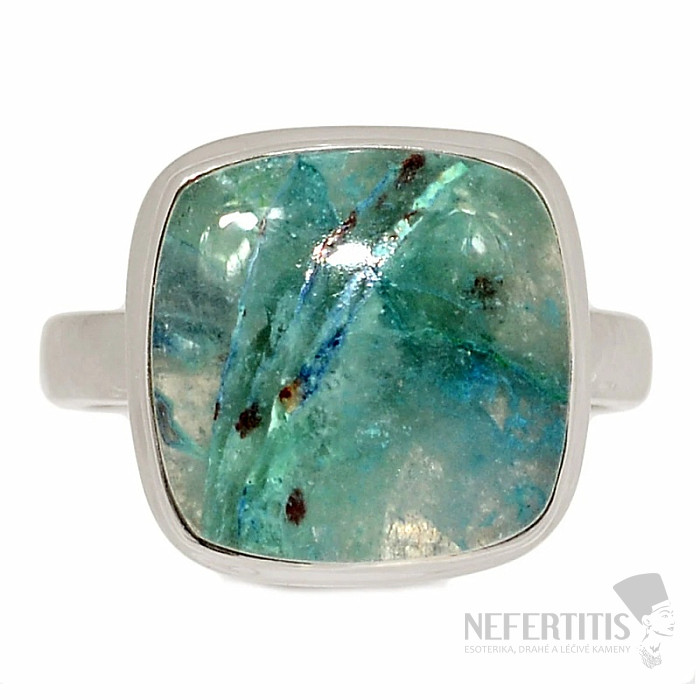 Charming silver ring with rare and collector-valued natural Quantum quattro. Ag 925. Quantum quattro is a combination of four minerals - shattuckite, dioptase, malachite and chrysocolla. Each piece of jewelry is original, unique and thanks to the color combination and arrangement of minerals, it stimulates the imagination, reminiscent of a bird's eye view of the Earth. You will have a beautiful piece of jewelry that no one will miss, suitable for various occasions. You are buying the jewelry shown directly. Stone size approx. 1.3 cm.