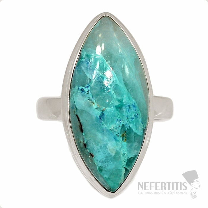 Charming silver ring with rare and collector-valued natural Quantum quattro. Ag 925. Quantum quattro is a combination of four minerals - shattuckite, dioptase, malachite and chrysocolla. Each piece of jewelry is original, unique and thanks to the color combination and arrangement of minerals, it stimulates the imagination, reminiscent of a bird's eye view of the Earth. You will have a beautiful piece of jewelry that no one will miss, suitable for various occasions. You are buying the jewelry shown directly. Stone size approx. 2.5 cm.