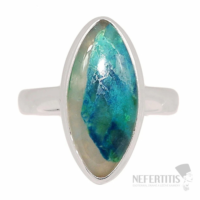 Charming silver ring with rare and collector-valued natural Quantum quattro. Ag 925. Quantum quattro is a combination of four minerals - shattuckite, dioptase, malachite and chrysocolla. Each piece of jewelry is original, unique and thanks to the color combination and arrangement of minerals, it stimulates the imagination, reminiscent of a bird's eye view of the Earth. You will have a beautiful piece of jewelry that no one will miss, suitable for various occasions. You are buying the jewelry pictured directly. Stone size approx. 2 cm.