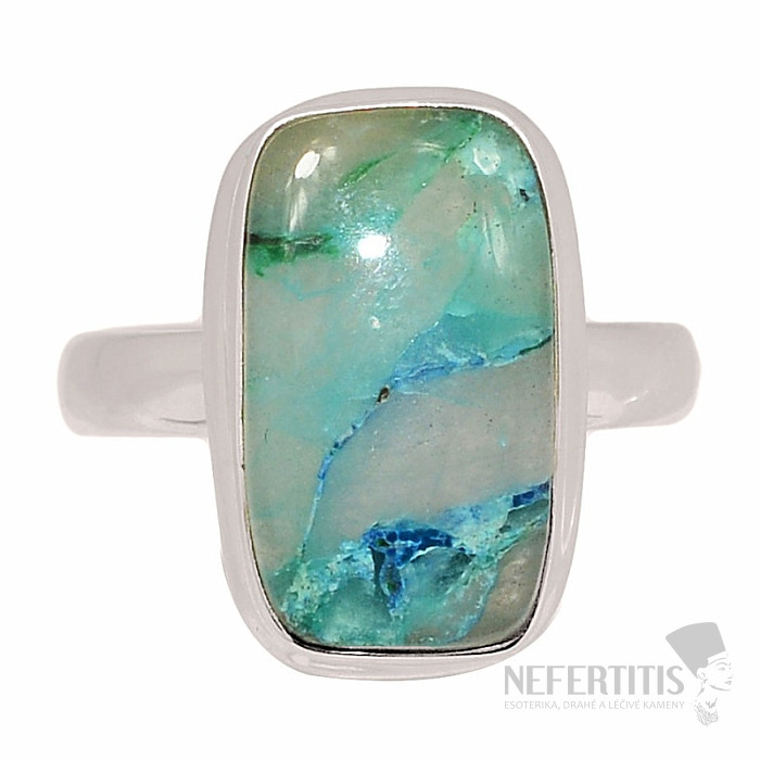 Charming silver ring with rare and collector-valued natural Quantum quattro. Ag 925. Quantum quattro is a combination of four minerals - shattuckite, dioptase, malachite and chrysocolla. Each piece of jewelry is original, unique and thanks to the color combination and arrangement of minerals, it stimulates the imagination, reminiscent of a bird's eye view of the Earth. You will have a beautiful piece of jewelry that no one will miss, suitable for various occasions. You are buying the jewelry shown directly. Stone size approx. 1.7 cm.