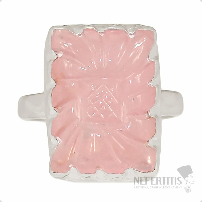 Rose quartz carved ring silver Ag 925 R45