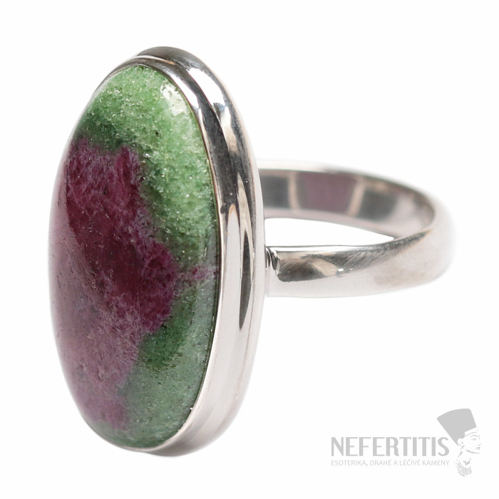 Beautiful ring with ruby in zoisite in silver . An exceptionally beautiful stone, which we rarely offer, is characterized by the rich colors of scarlet ruby and several tones of green zoisite. Not only thanks to the colors, but also the beautiful pattern of the stone, this ring is unique and unmissable. Stone size approx. 2.5 cm. Ag 925. You are buying the jewelry shown directly.