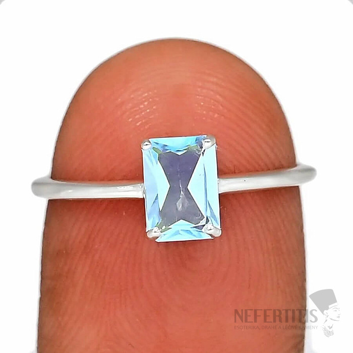 Elegant and delicate, yet timeless silver ring with cut blue topaz . Ag 925. Stone size approx. 0.7 cm . Illustrative photo, the color of the stone may differ slightly from the photo. However, you will always receive a piece of jewelry of comparable quality.