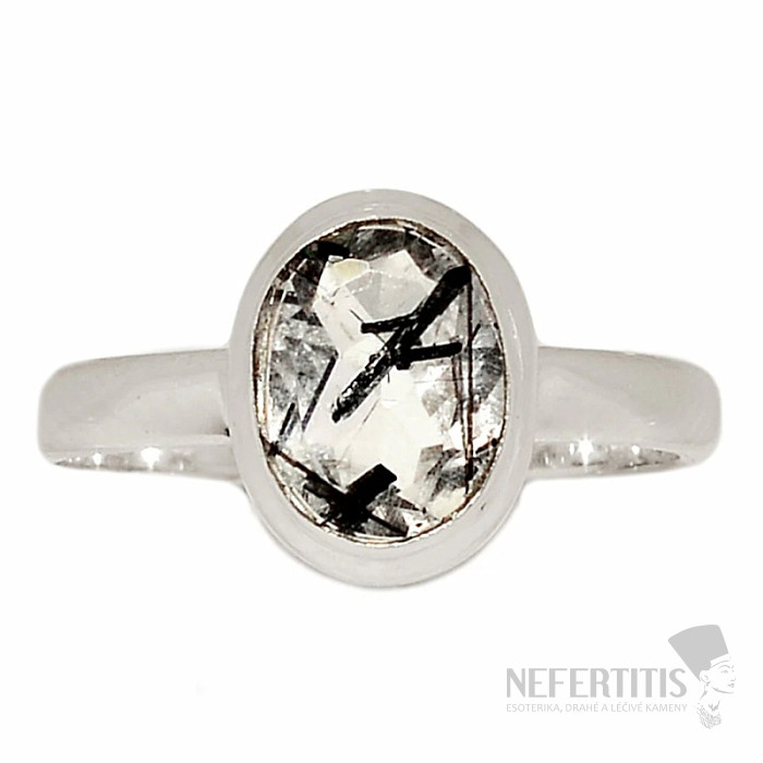 Silver ring made of cut crystal with black tourmaline . Ag 925. You are purchasing the jewelry shown directly. The stone size is approximately 0.9 cm.