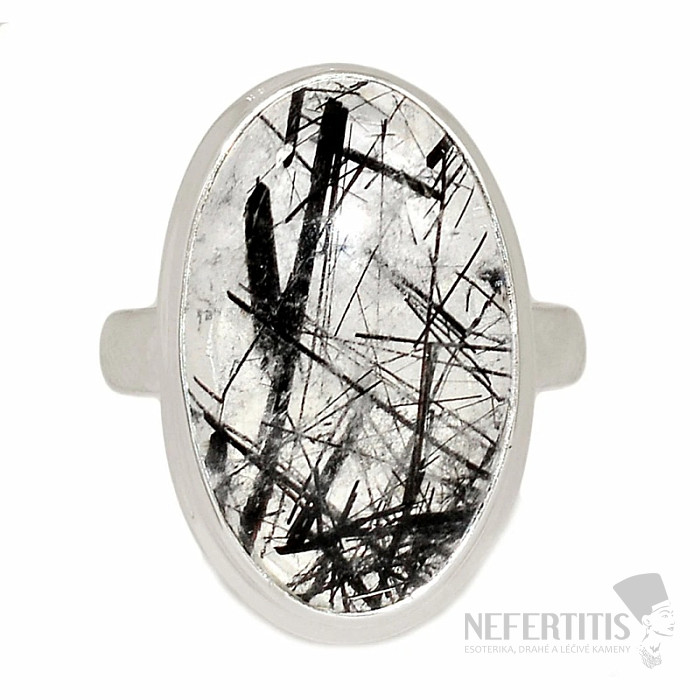 Silver ring made of crystal with black tourmaline . Ag 925. You are purchasing the jewelry shown directly. The size of the stone is approximately 2.2 cm.