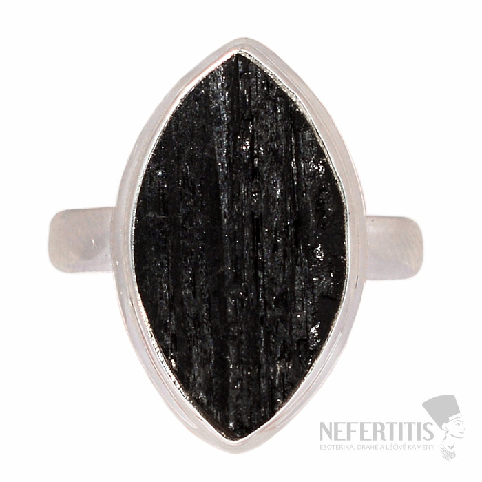 Attractive, elegant, a little mysterious ring made of a large raw black tourmaline skoryl in silver. The black color of the tourmaline, which contrasts beautifully with the shine of the silver frame, gives this ring elegance and makes it a very decorative piece of jewelry. Black raw tourmalines commonly contain cracks, this is their characteristic feature and proof that you are buying genuine natural tourmaline. Ag 925. Stone size approx. 2 cm. You are buying the jewelry pictured.