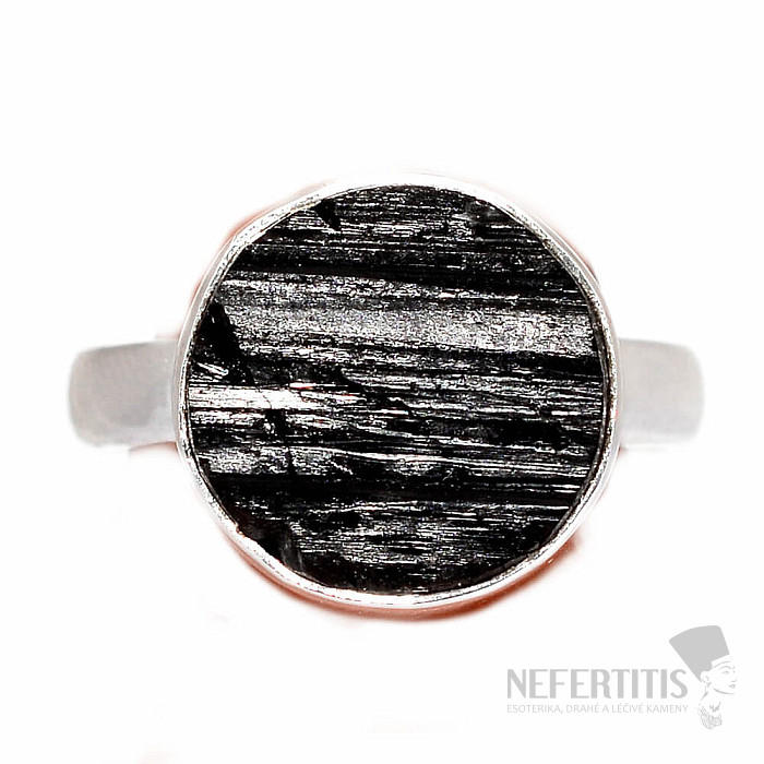 Attractive, elegant, a little mysterious ring made of a large raw black tourmaline skoryl in silver. The black color of the tourmaline, which contrasts beautifully with the shine of the silver frame, gives this ring elegance and makes it a very decorative piece of jewelry. Black raw tourmalines commonly contain cracks, this is their characteristic feature and proof that you are buying genuine natural tourmaline. Ag 925. Stone size approx. 1.5 cm. You are buying the jewelry pictured.