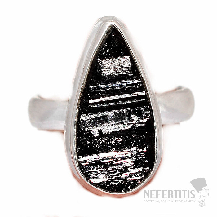 Attractive, elegant, a little mysterious ring made of a large raw black tourmaline skoryl in silver. The black color of the tourmaline, which contrasts beautifully with the shine of the silver frame, gives this ring elegance and makes it a very decorative piece of jewelry. Black raw tourmalines commonly contain cracks, this is their characteristic feature and proof that you are buying genuine natural tourmaline. Ag 925. Stone size approx. 2 cm. You are buying the jewelry pictured.