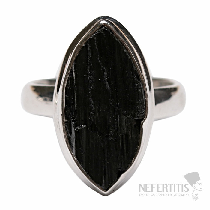 Attractive, elegant, a little mysterious ring made of a large raw black tourmaline skoryl in silver. The black color of the tourmaline, which contrasts beautifully with the shine of the silver frame, gives this ring elegance and makes it a very decorative piece of jewelry. Black raw tourmalines commonly contain cracks, this is their characteristic feature and proof that you are buying genuine natural tourmaline. Ag 925. Stone size approx. 1.9 cm. You are buying the jewelry pictured.