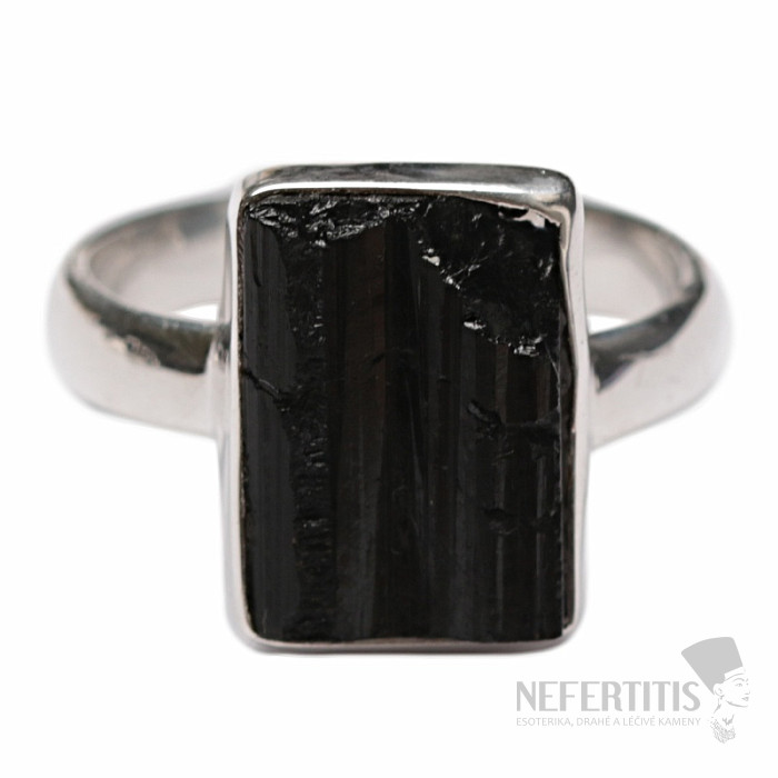 Attractive, elegant, a little mysterious ring made of a large raw black tourmaline skoryl in silver. The black color of the tourmaline, which contrasts beautifully with the shine of the silver frame, gives this ring elegance and makes it a very decorative piece of jewelry. Black raw tourmalines commonly contain cracks, this is their characteristic feature and proof that you are buying genuine natural tourmaline. Ag 925. Stone size approx. 1.5 cm. You are buying the jewelry pictured.