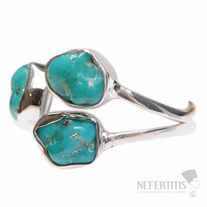 Distinctive and very elegant silver ring made of blue turquoise , the so-called "Kingman turquoise", mined in the Kingman area of Arizona, USA. This is a high-quality stone known for its rich blue and green color and characteristic veining. Ag 925. The size of the individual stones is approximately 0.5 - 0.6 cm. You are purchasing the jewelry shown directly.