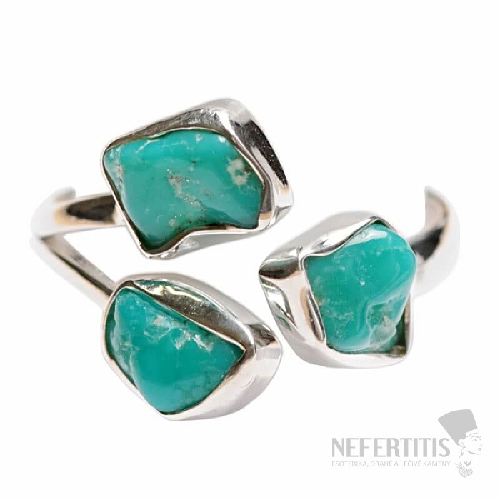 Distinctive and very elegant silver ring made of blue turquoise , the so-called "Kingman turquoise", mined in the Kingman area of Arizona, USA. This is a high-quality stone known for its rich blue and green color and characteristic veining. Ag 925. The size of the individual stones is approximately 0.5 - 0.6 cm. You are purchasing the jewelry shown directly.