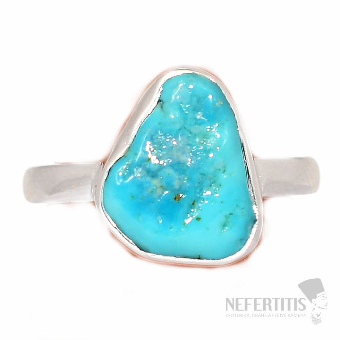 Distinctive and very elegant silver ring made of blue turquoise , the so-called "Kingman turquoise", mined in the Kingman area of Arizona, USA. This is a high-quality stone known for its rich blue and green color and characteristic veining. Ag 925. Stone size approx. 1.3 cm. You are purchasing the jewelry pictured.