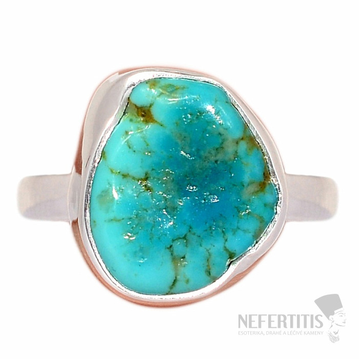 Distinctive and very elegant silver ring made of blue turquoise , the so-called "Kingman turquoise", mined in the Kingman area of Arizona, USA. This is a high-quality stone known for its rich blue and green color and characteristic veining. Ag 925. Stone size approx. 1.3 cm. You are purchasing the jewelry pictured.