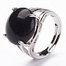 Elegant ring with a large black agate. The ring is made of base metal, with adjustable size, size approx. 56 mm (US 8) to 62 mm (US 11). The size of the agate is approx. 1.6 cm, common metal. Illustrative depiction… more »