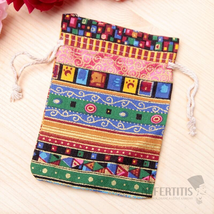 Canvas bag ethnic motif Multicolor with drawstring for storing small valuables, stones, jewelry and for attractive packaging and gifts for those you love. Gift bags and pouches are an easy and cheap alternative to gift boxes. Treat your favorite trinkets, jewelry or stones to comfort and protection inside this bag. The predominant color is yellow-gold. Bag dimensions: approx. 10x14 cm. Material: fabric.