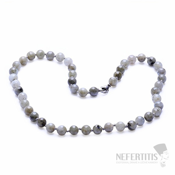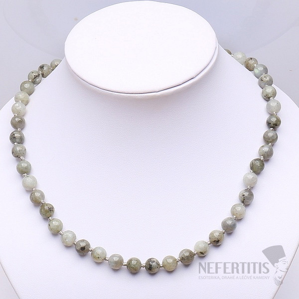 Labradorite beads necklace. Length approx. 47 cm, bead size approx. 8.5 mm, jewelery fastening. Illustrative image, you are buying a natural product, so the individual necklaces may differ from it mainly in color, luster and stone drawing. However, you will always receive a necklace of comparable quality.