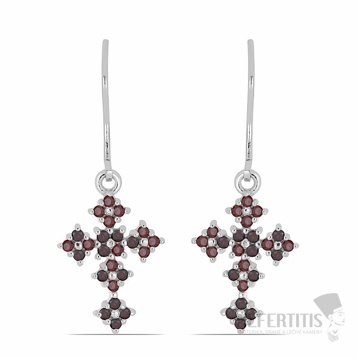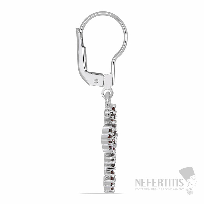 Exclusive silver earrings from the Nefertitis design line with cut natural garnets. The stones are set in rhodium-plated silver , the surface of which resembles the appearance of white gold, giving the earrings a luxurious impression. Rhodium-plated silver is less prone to oxidation (blackening) of the surface. A beautiful sparkling piece of jewelry with clear stones of jeweler's quality, the beauty of which is emphasized by the impact of light on the individual surfaces of the cut, suitable for various occasions. High-quality safety fastening of earrings, the so-called ladies' patent. Rhodium-plated silver Ag 925/1000. The weight shown is for the entire pair. We deliver the jewelry in a standard paper gift box. Illustrative image.