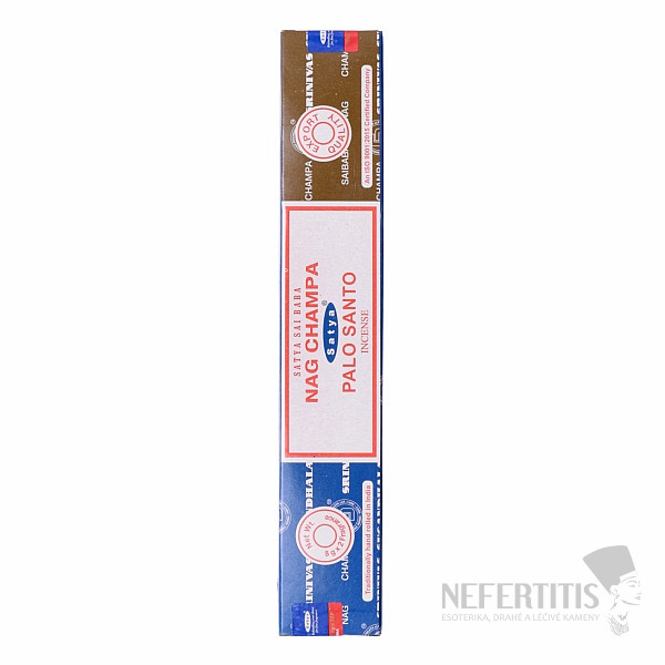 Nag Champa and Palo santo incense sticks. Unique Indian incense sticks Satya Sai Baba Nag Champa from the manufacturer Shrinivas Sugandhalaya, with bamboo chips, made from quality natural Himalayan trees and herbs. Traditional handmade. Relax, rest, meditate, suppress stress and tension through the scents of Nag Champa, create a pleasant atmosphere through incense sticks with the scent of woods and herbs, moments of well-being, relaxation, rest and pleasant thoughts, treat yourself to moments of calm with the sweet, balsamic scent of holy wood, which brings a sense of harmony and allows the mind to relax.