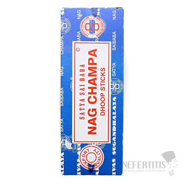Nag Champa - a fragrant mixture of Indian origin, which includes the champa flower from the Magnolia champaca tree (magnolia champaca), which has strongly aromatic flowers with an intoxicating scent just before sunset, and is also used as part of perfumes. The petals resemble the head of a snake (in Indian languages as "nag"). Indian women often wear flowers behind their ears when the warmth of the skin develops their scent. Nag Champa ingredients vary by manufacturer and the exact ingredients are a trade secret. It also includes sandalwood, resin from the tree Ailanthus malabarica, pajasan in Czech, known as halmaddi, which is also the name for its resin, the smell of plumeria flowers (Plumeria rubra, red and Plumeria acutifolia, sharp-leaved, a mixture of fragrances called frangipani) and Mesua ferrea - Indian pink chestnut (nagchampa, nagkeshar).