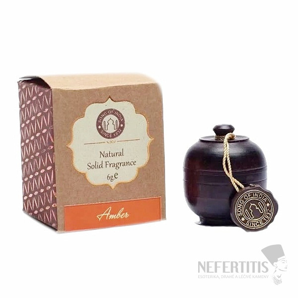 Fragrance cream, air freshener Amber with a resinous scent with sweet balsamic notes , with a scent that will help freshen the air in your home or office. It will help you to put yourself in a state of calm and well-being and will leave a pleasant, light scent that will gently diffuse into the space, leaving the space imbued with calming and positive energy. Let yourself be charmed by the delicately resinous fragrance with sweet balsamic notes. Content approx. 6 g, the cup is handmade from rosewood, from plants of the genus Dalbergia. Each cup is unique in its color and design. Illustrative image.