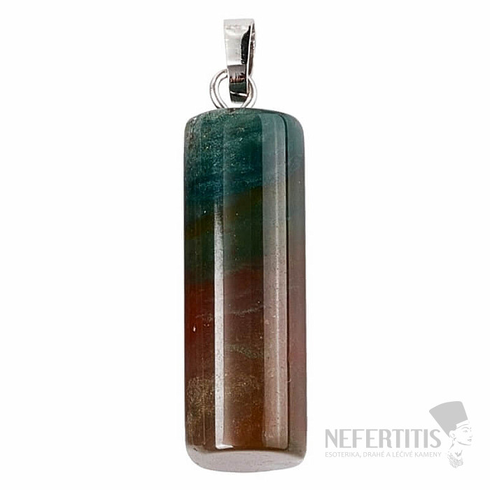 An attractive pendant made of multicolored Indian agate in the shape of a roller, with a base metal handle. The diameter of the stone is approx. 0.8 cm, the size of the roller is approx. 2.3 cm, the total length of the pendant including the hanging eye is approx. 3.2 cm. Illustrative image , individual pendants differ significantly from it mainly in color shade, structure and pattern of the stone.