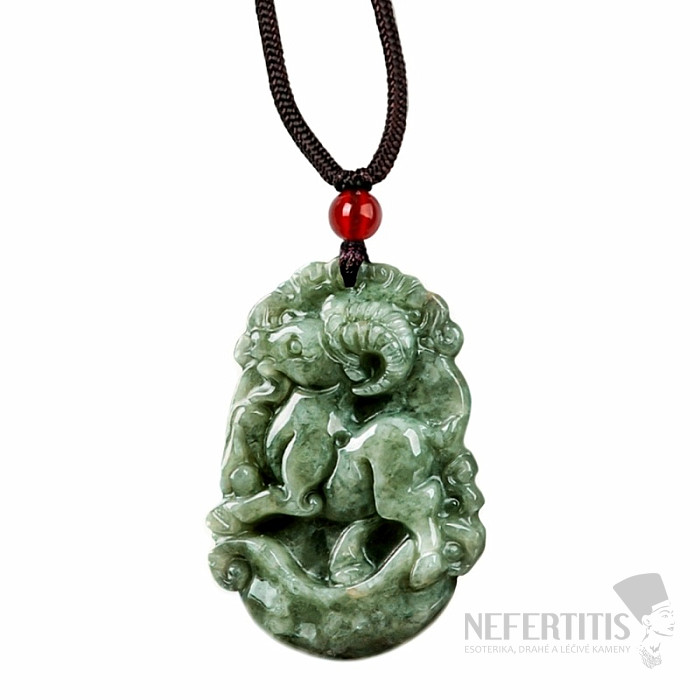 An attractive pendant made of jade with a string with a precise depiction of the sign of the Chinese zodiac - the Goat. Jadeite size approx. 3.4 cm, waxed string length approx. 67 cm. Illustrative depiction of natural material, where the color and structure of the stone may differ from the accompanying photos. However, you will always receive a pendant of comparable quality.