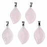 An attractive pendant made of Rose quartz in the shape of a leaf, with a handle made of base metal. A very elegant and lovely piece of jewelry. The size of the leaf is approx. 2.5 cm, the length of the pendant including the eyelet is 3.3 cm. Illustrative image , individual pendants may differ from it mainly in color shade, structure and pattern of the stone.